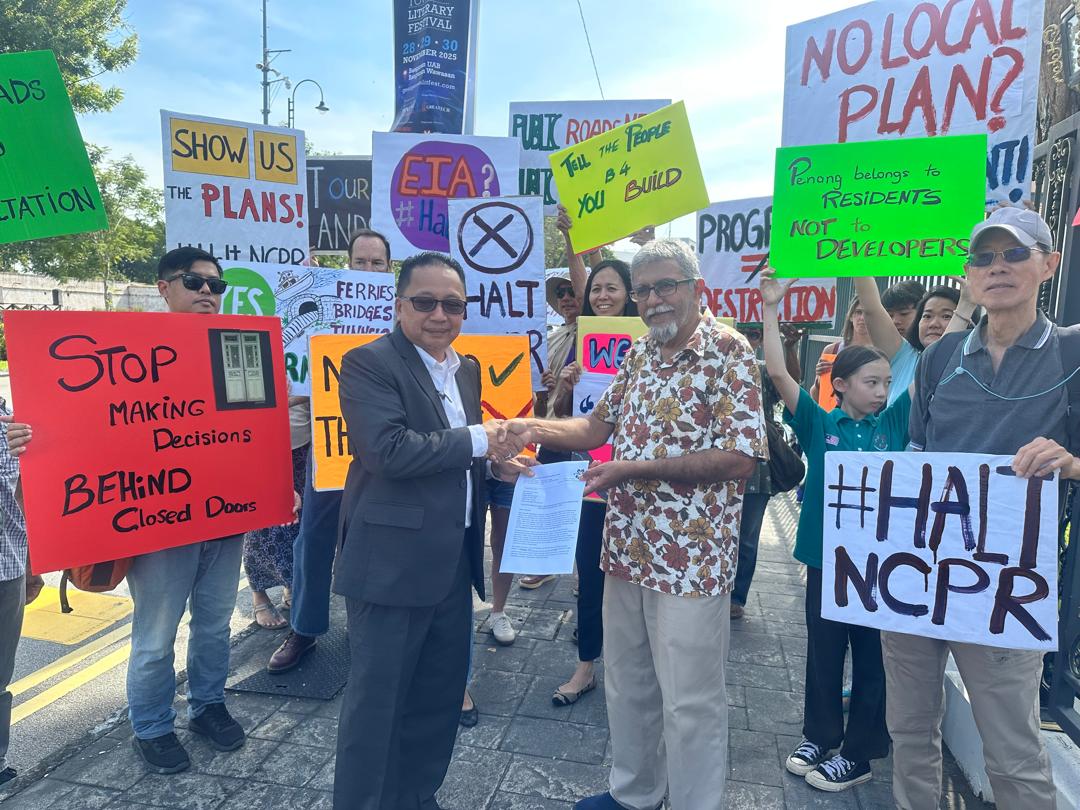 约20名来自丹绒武雅、峇都丁宜及直落巴巷的居民在槟州议会外高举大字报,同时提呈备忘录予槟州首长曹观友,促请州政府在兴建北岸高速大道(NCPR)前,与当地居民展开对话会,确保有关工程的规划过程问责透明……