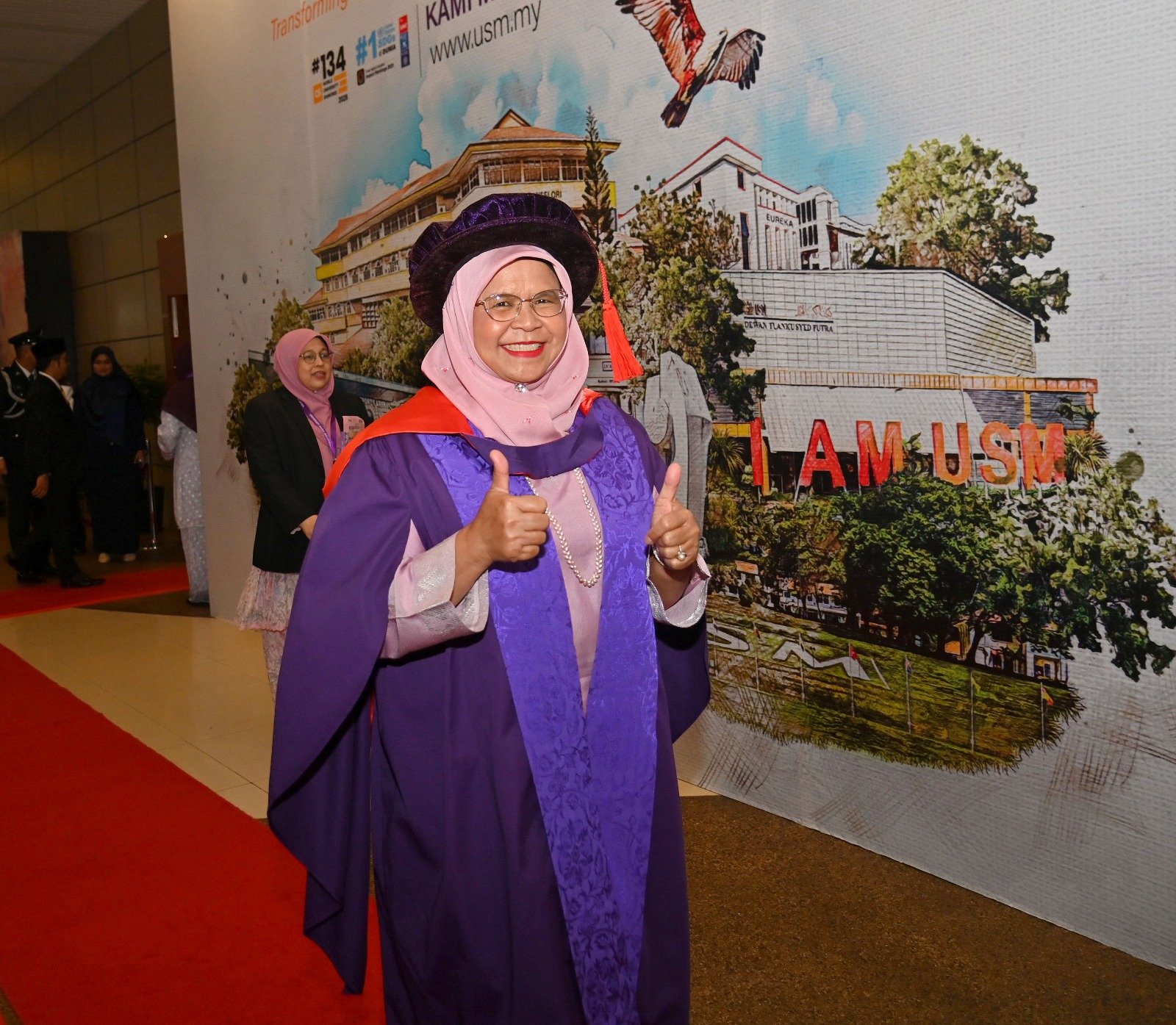 前吉隆坡市长拿督斯里巴杜卡麦慕娜重返母校理科大学接领“荣誉城市与区域规划博士”,并感激两名教授在30年前为她敞开通往理大学术的大门,让她成功在有限的一年内,一边哺育襁褓中的女儿,一边完成为期两年的硕士学位。