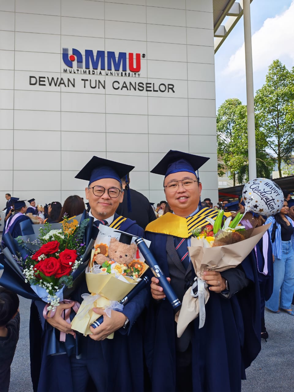 亚依淡州议员黄顺祥周六在多媒体大学(MMU)毕业典礼上,正式获颁企业管理硕士(MBA)。值得一提的是,本报《光华日报》总编辑林松荣亦为同届毕业生,两人一同完成3年多的进修旅程,在典礼上共享学成喜悦……
