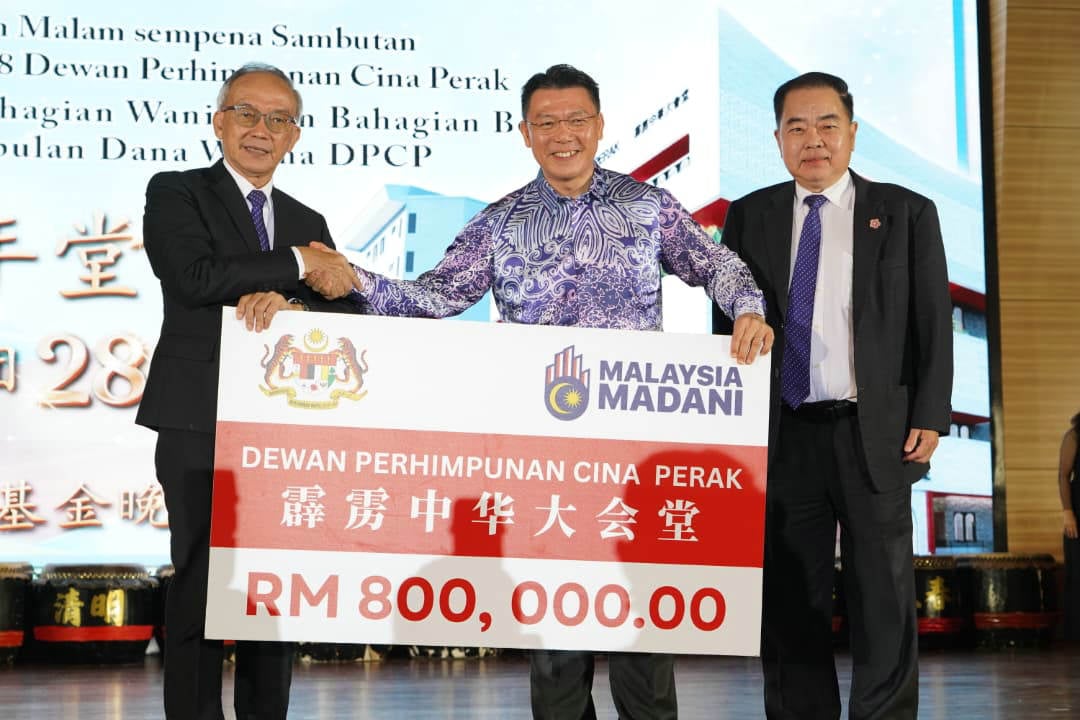 房屋及地方政府部长倪可敏周日晚(9日)以主宾身份受邀出席霹雳华人大会堂(霹华堂)98周年光辉庆典,并在现场宣布再加码20万令吉,捐献霹华堂大厦基金80万令吉,作为华堂98周年纪念大礼,鼓励霹华堂继续将华堂“传承文化、团结华社、支持母语及服务社会“的精神 坚定不移地传承下去。