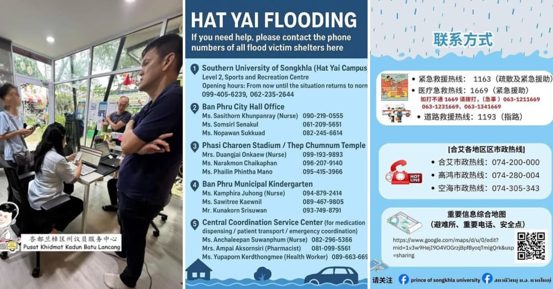 泰国合艾遭洪水重创,许多家人滞留泰南的大马人,涌入峇都兰樟州议员王耶宗脸书求救。王耶宗汇报最新消息,截至周三下午1时30分,已有1006名大马人获救。