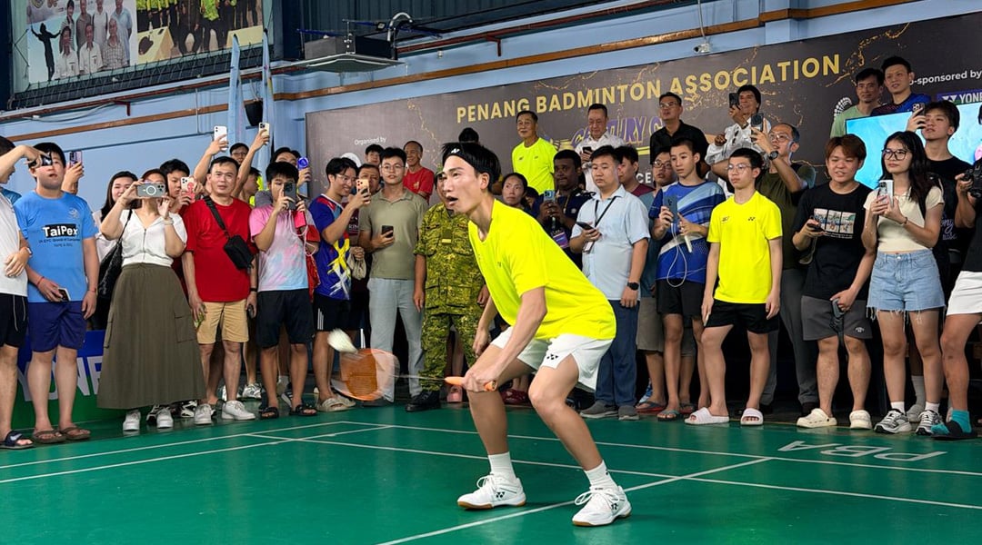 日本羽球巨星兼前世界冠军桃田贤斗周五(11月21日)来到槟城,参与槟州羽球总会(PBA)为迎来 100 周年特别举办的“世纪杯羽球团体赛”(Century Cup),吸引大批球迷前往观赛……