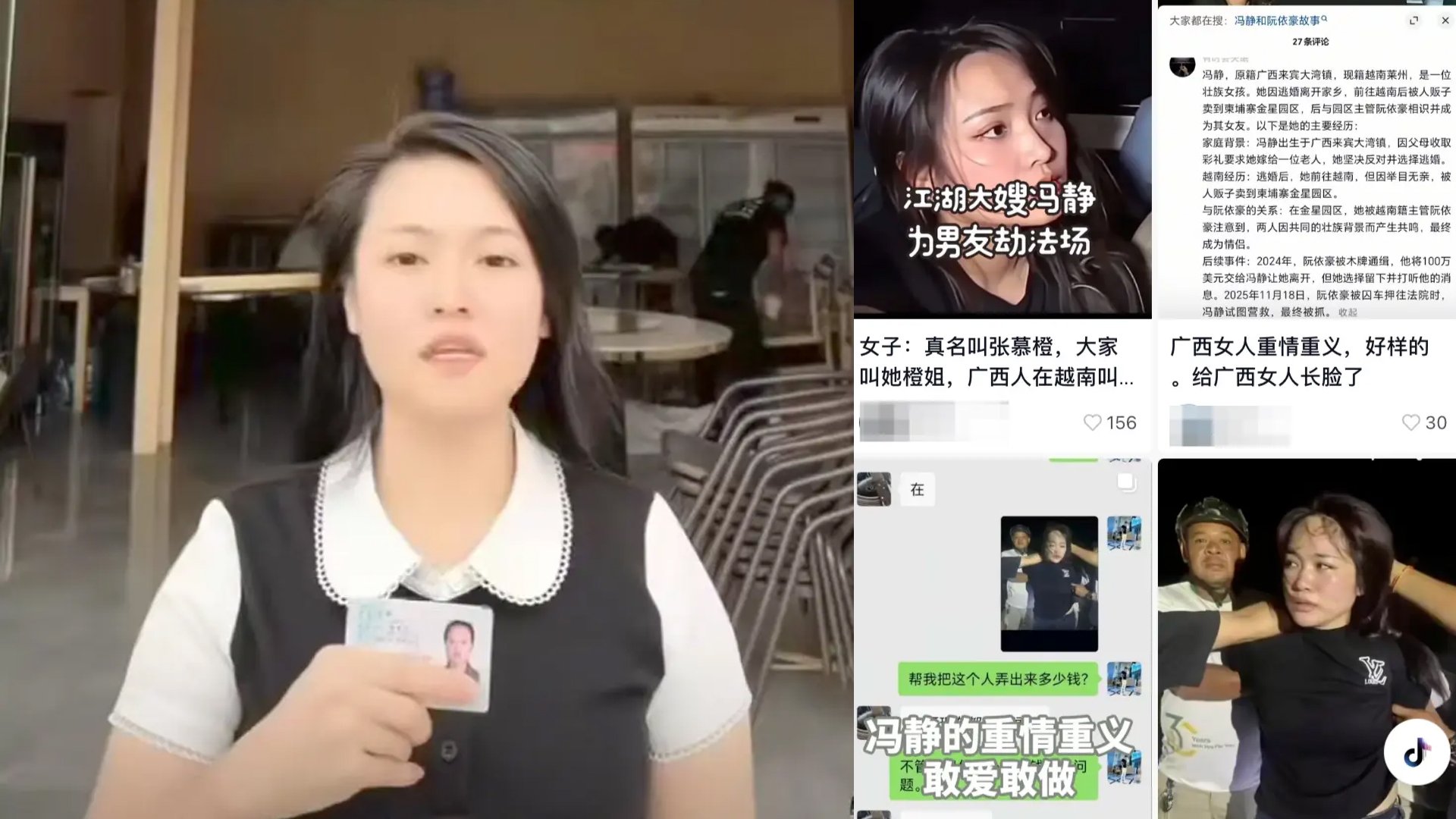 柬埔寨柴桢省初级法院11月18日发生震惊社会的劫囚事件,中国社交媒体竟然广传被称为“江湖最后一个大嫂”的越南递枪女子是来自广西来宾市大湾镇壮族姑娘冯静,并编造她因逃婚流落越南成为“大哥女人”的虚构情节,在社交媒体广为流传。