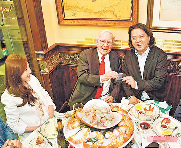(华盛顿12日综合电)美国股神巴菲特一年一度的慈善午餐竞标活动,再度由中国富豪得标,38岁的网路游戏业富豪朱晔以234万美元(约1005万令吉)标下和巴菲特共进午餐,周二他与妻子一行7人在纽约一家牛排餐厅和巴菲特共进午餐,对于花两百多万美元吃一顿饭,朱晔事后表示“非常值得”。