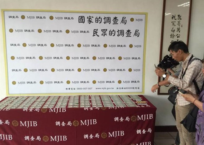 (台北28日综合电)南投县一名许姓台商去年6月将一张面值100万美元的纸钞,捐赠给一个基金会,经美商花旗银行鉴定为“疑经变造”。法务部调查局南投县调查站其后约谈许男,并查扣合共100张同样面值100万美元、总面值达1亿美元的纸钞,纸钞经美国特勤局鉴定,竟证实是利用美国联邦储备局使用的真钞纸张改造而成。而此案也是台湾史上最大宗的假美钞案。