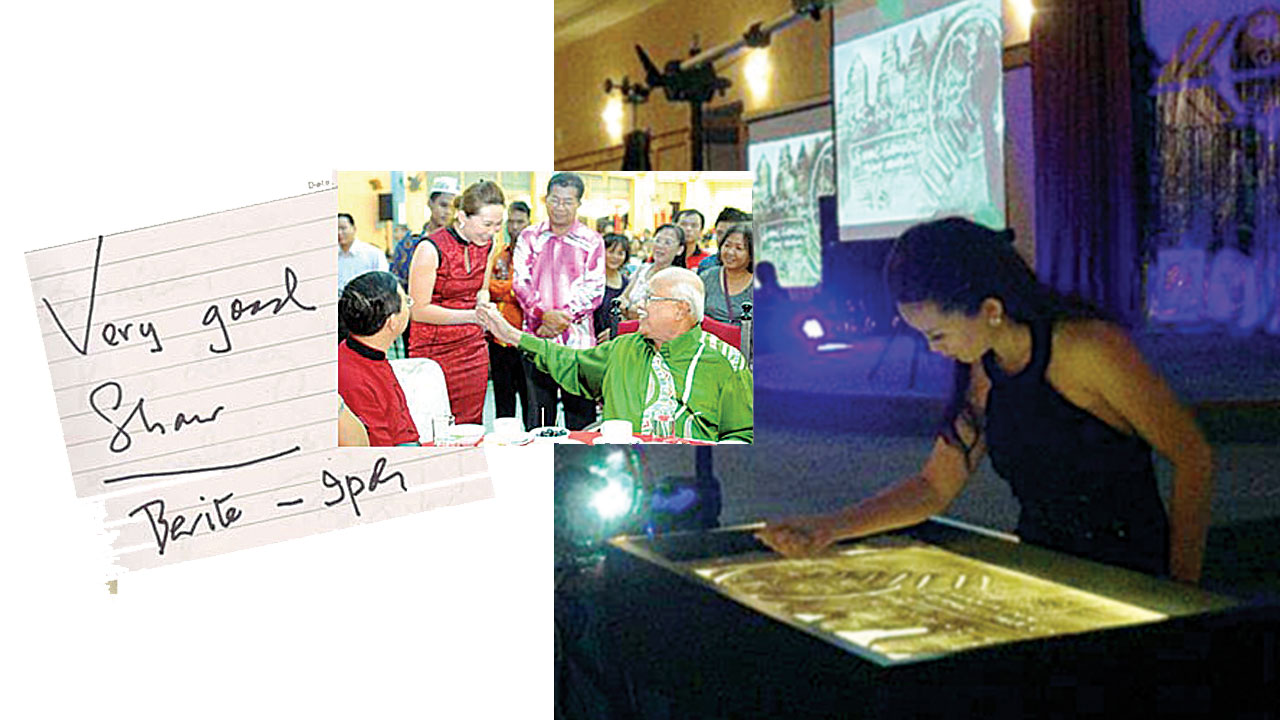 2013年卉茵辞去银行工作全心投入沙画创作,同年接下第一场商演,站在千人晚宴上演出。3年后的今天,她已经是全职的沙画艺术家,表演的场域涵盖企业宴会、活动、婚宴等,用沙子叙述企业发展史、婚宴新人的恋爱故事等等,Bernice Wong的名字代表了惊喜和期待。大家看到台上那十数分钟如梦似幻的沙画表演,卉茵似乎是信手拈来,点沙成画,但一笔一勾勒背后是长时间的努力。
