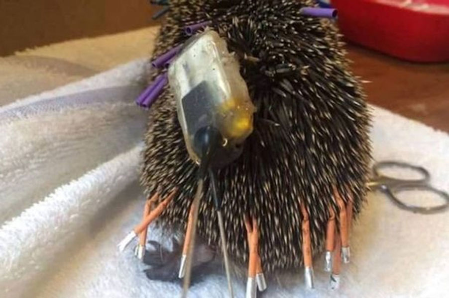 (伦敦23日综合电)目睹小刺猬“鲁塞特”的照片,你可能以为它被人恶搞,实情它是被英国诺丁汉特伦特大学当动物实验,全身插满胶管标签及无线电频追踪器,饱受脱水、体重过轻、脚趾破烂折磨,最终不治。