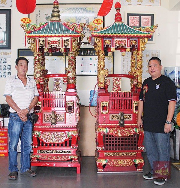 林佑明介绍,新神轿是在中国福建打造,其龙柱比旧神轿更稳固,让善信抬轿时不那么吃力,且神轿上的雕刻已改用金箔做装饰,比旧神轿用的金漆更夺目。