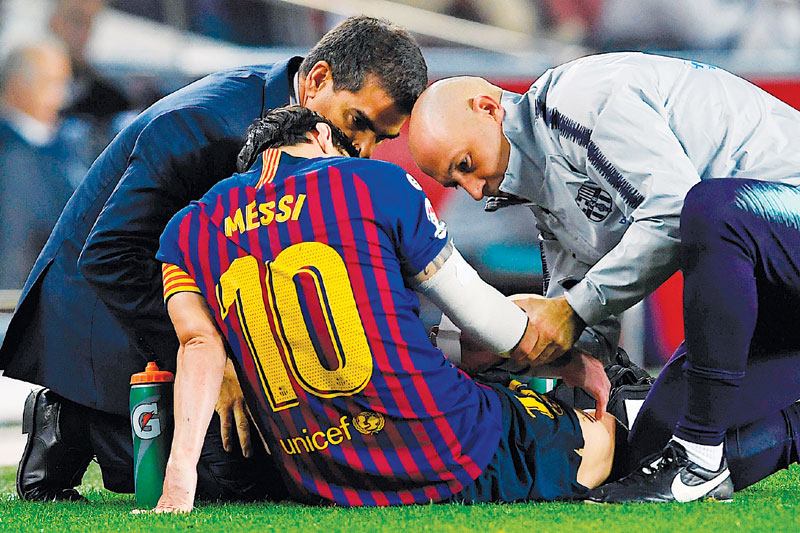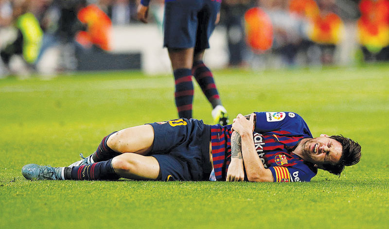 (马德里21日综合电)周六结束的西甲联赛第9轮一场焦点争夺战中,在4比2战胜塞维利亚之后,巴塞隆纳终结了4轮不胜的尴尬。但在这场胜利中,巴塞也付出了惨痛的代价,梅西右臂桡骨骨折,他将休战3周左右。