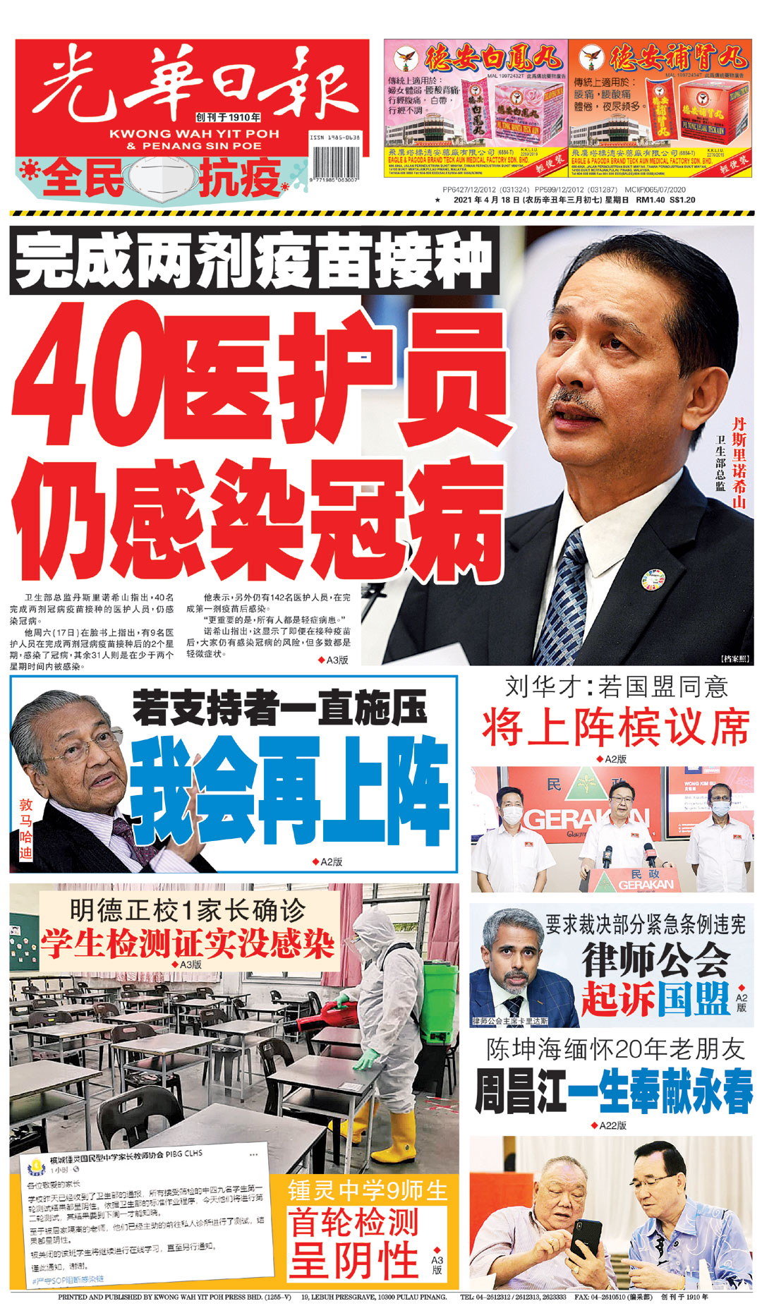 40医护人员完成接种仍染疫 诺希山:有疫苗也勿松懈