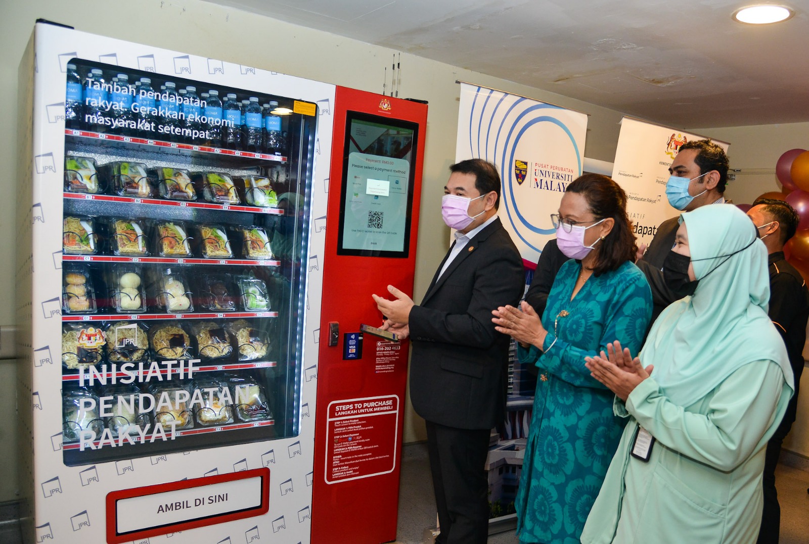 拉菲兹为马大医药中心(PPUM)的贩卖机主持推介礼。