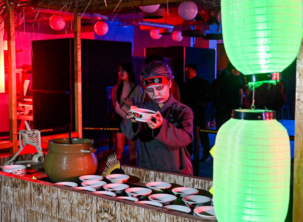 粿汁的档口除了提供打包服务之外,同时也在档口旁摆放2张桌椅,让顾客可以在档口旁堂食。
