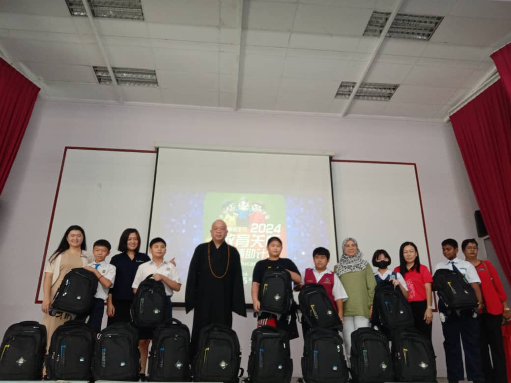 她说,北海普明精舍和主持法尊师父捐赠书包的善举,不仅是物质上的资助,更在精神上鼓励学生,尤其是让B40低收入群体家庭的孩子们,感受到社会的温暖和关爱。