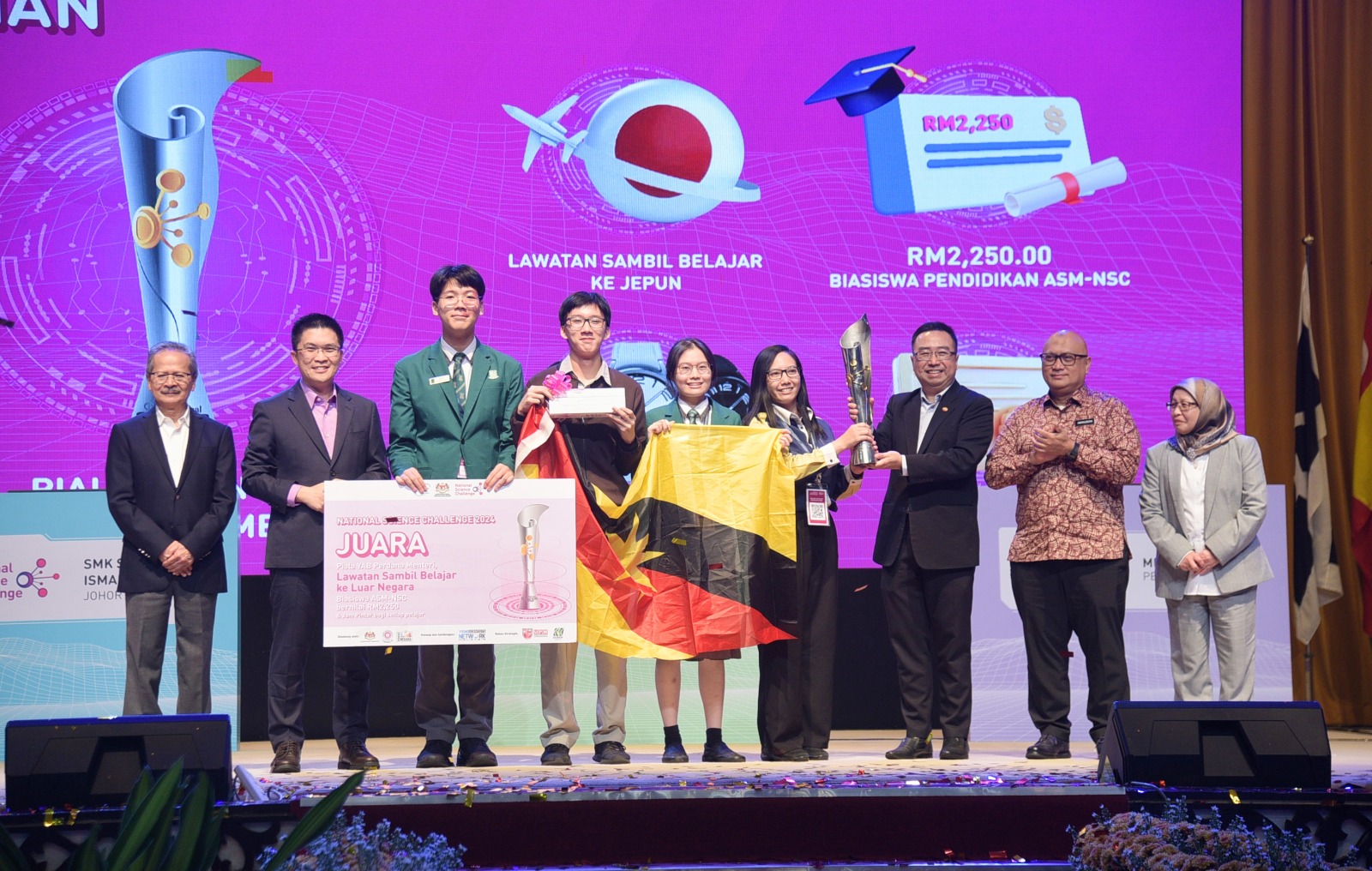 比赛最终由古晋圣约瑟中学江启凯、刘书衔及蔡宝慧赢得冠军:其他出席者包括教育部副部长黄家和。