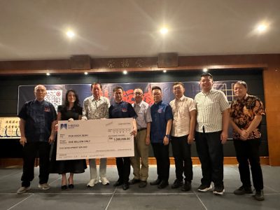 ECK发展集团早前在大伯公香花车大游行认捐100万令吉予宝福社,该集团董事经理丹斯里许永铨与夫人潘斯里周佳嘉当晚移交模拟支票予宝福社,并由主席林辉贵接领。