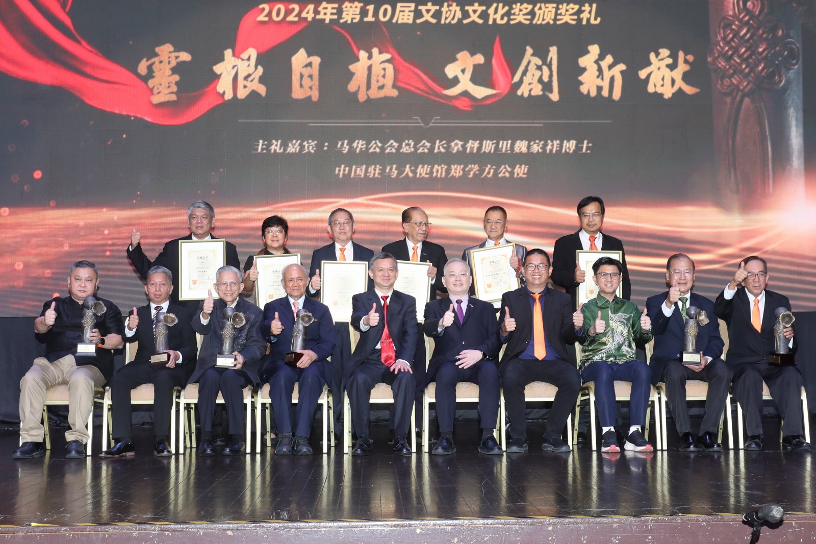 马来西亚华人文化协会50周年会庆暨第十届文化颁奖典礼,在7名对中华文化有着卓越贡献的得奖者以及众人欢呼下,圆满地落下帷幕。