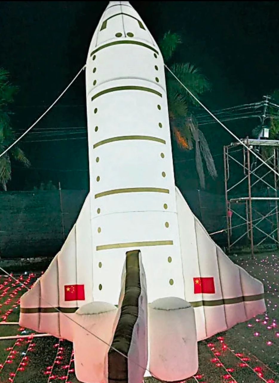 武吉甘蜜LED灯节出现一个印有中国国旗的火箭造型灯饰后,警方已展开调查并传召主办方录供。(网路图)