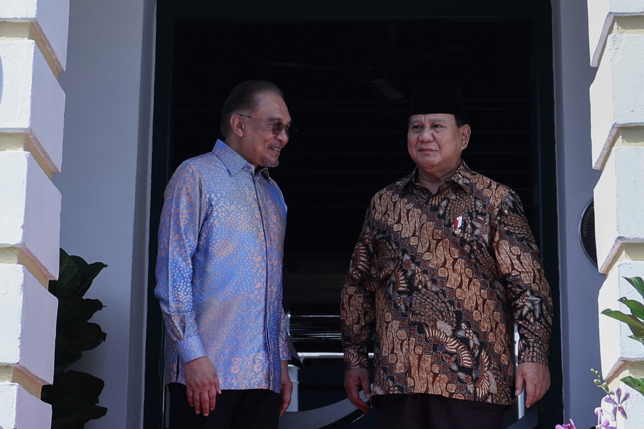 安华(左)说,印尼已表明协助和配合马来西亚在今年担任东盟轮值主席国的承诺。右为普拉博沃。