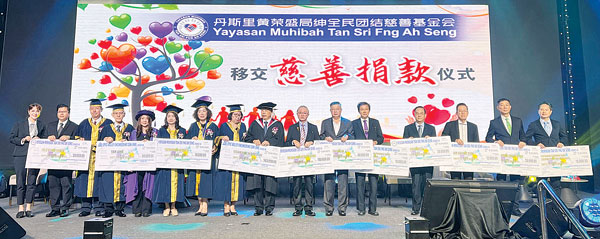 该基金会也在结业礼上,拨出56万3000令吉慈善款项,移交支票予多个受惠社团、学校、慈善组织及个人单位,为社会慈善献力,将爱心散布民间。