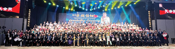 全体超级领袖训练班结业生与丹斯里拿督斯里拿督巴杜卡黄荣盛准将军博士教授局绅以及与会嘉宾合影。