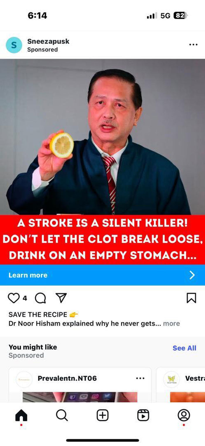 名义和肖像再次遭盗用,前卫生总监丹斯里诺希山矢言将采取法律行动对付。