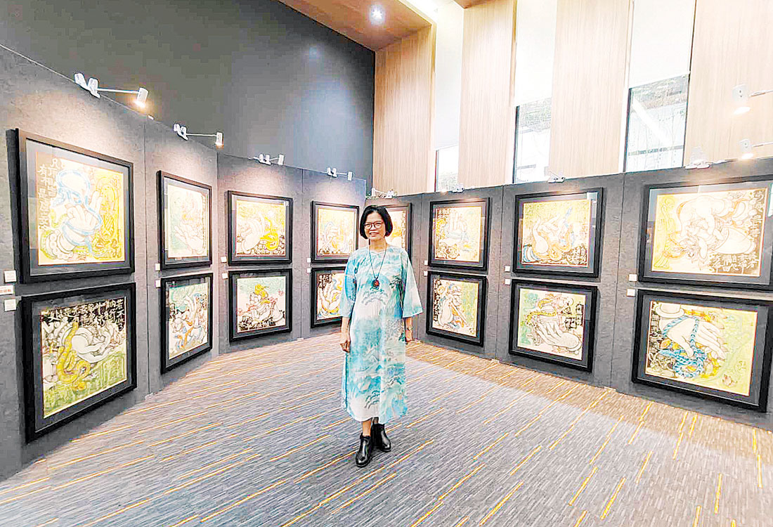 陈玉凤说,画作背景融入的佛像印章和莲花颜色各有深意。
