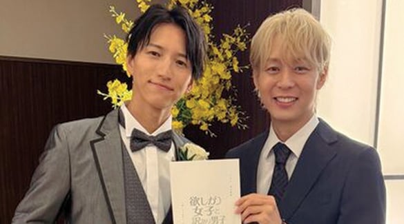网友夸赞任达华(左)平易近人,开心同框合影。