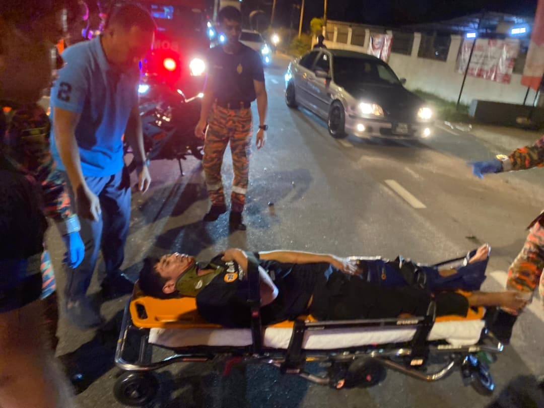 摩托车与轿车发生碰撞,巫裔男子腿部受轻伤。