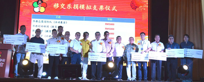仪式上,大会拨出3万4000令吉,捐助区内8个教育单位及慈善团体,受惠的包括威南华都志愿消防队、华都村幼稚园、华都小学、敬群小学、峇都加湾光育小学各5000令吉;崇光小学、华都中学华乐团、威南日新国民型中学各3000令吉。