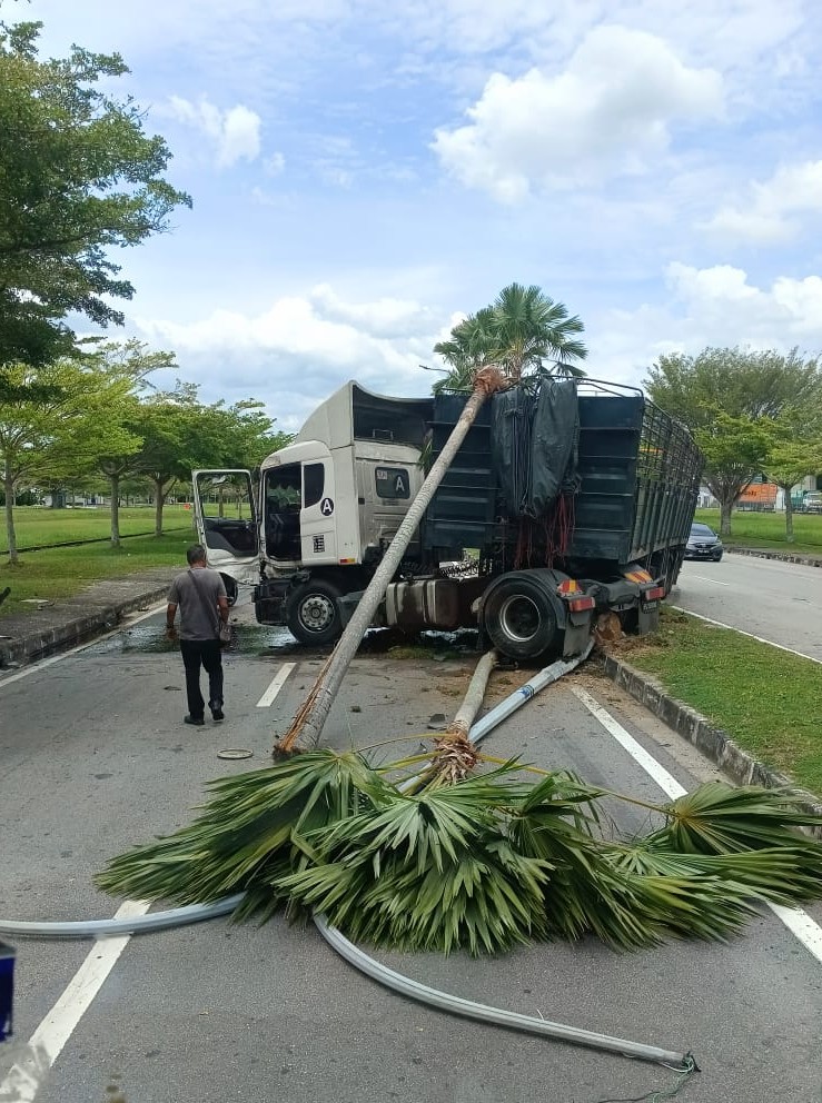 一辆空车拖格罗里在武吉敏惹工业区失控撞上路灯柱,导致车上约800公升柴油泄漏,所幸没有波及其他车辆,罗里司机与随车员皆安然无恙。