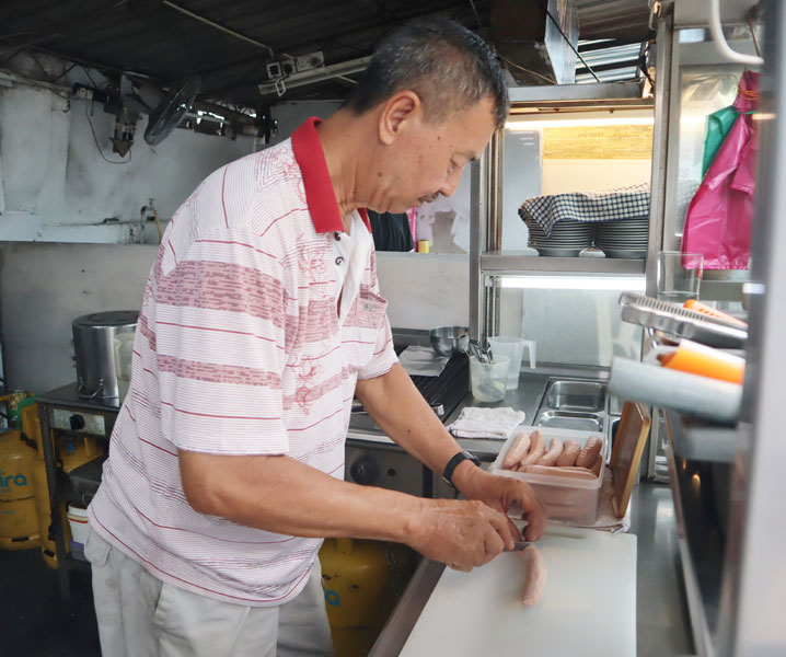 他说:“年纪大了,没人接手,能做就做。” 质朴的一句话,道出了老一辈小贩对职业的敬重与坚守。去年11月,因旧址装修,Wunderbar German Sausage搬到Goodall Cafe,与三十多档老字号为邻,也吸引不少熟客追随而来。
