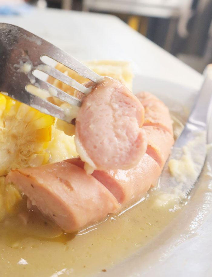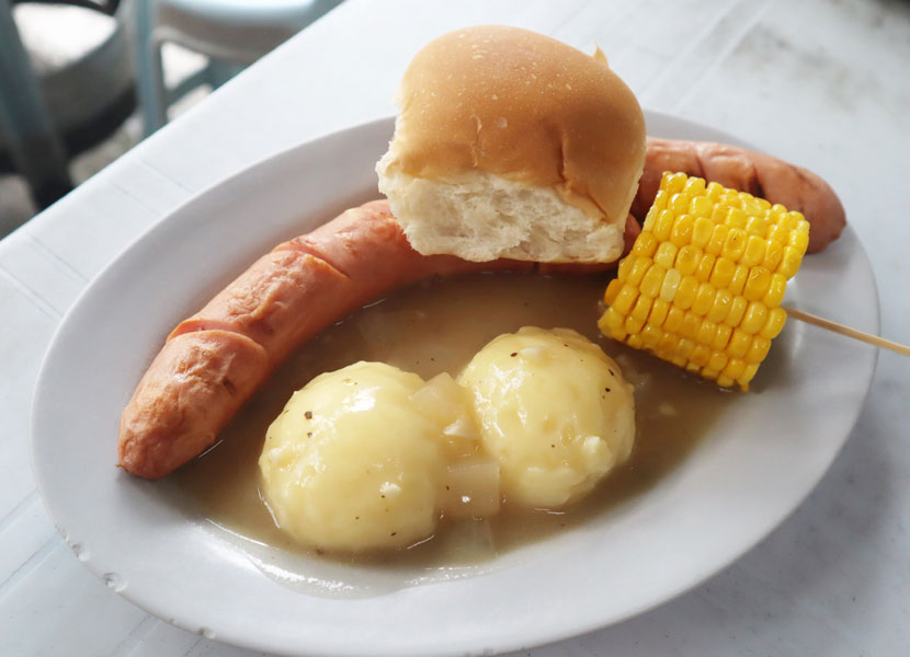 当年,为了迎合本地口味并克服限制,德国老板甚至改良了传统食谱。经典德国香肠原本搭配酸菜,但因咖啡室冷藏条件有限,改以烤玉米取代,配上猪肉或鸡肉香肠,别具本地特色。