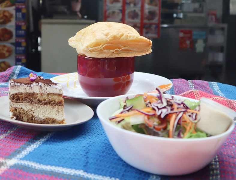 Eliz’s Pie 以各式家乡派著称,包括千层派、羊肉派、牛柳排、蘑菇鸡肉派及苹果派等,早年在城里滨海的美食坊便征服过无数味蕾。派皮烤得酥香,馅料新鲜饱满,配上一碗红萝卜蘑菇汤,层次丰富,令人垂涎。