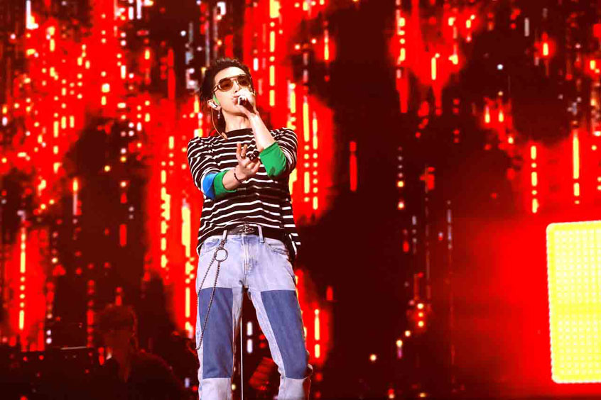 华晨宇的舞台特效,从高处坠落的白色人形有只大手接住了他。