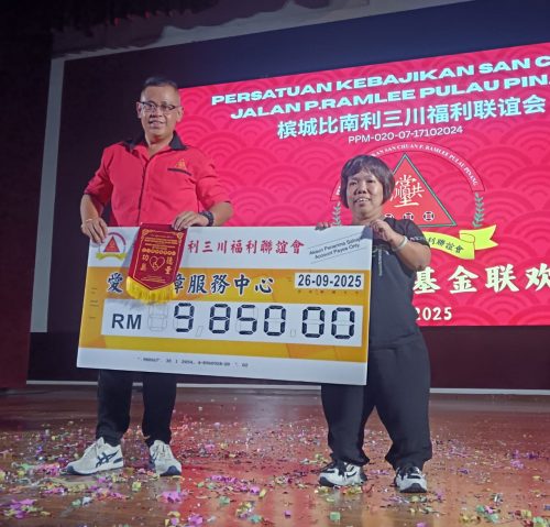 槟城比南利三川福利联谊会举行筹募慈善活动基金联欢晚会,筹获共9850令吉给爱心残障服务中心。