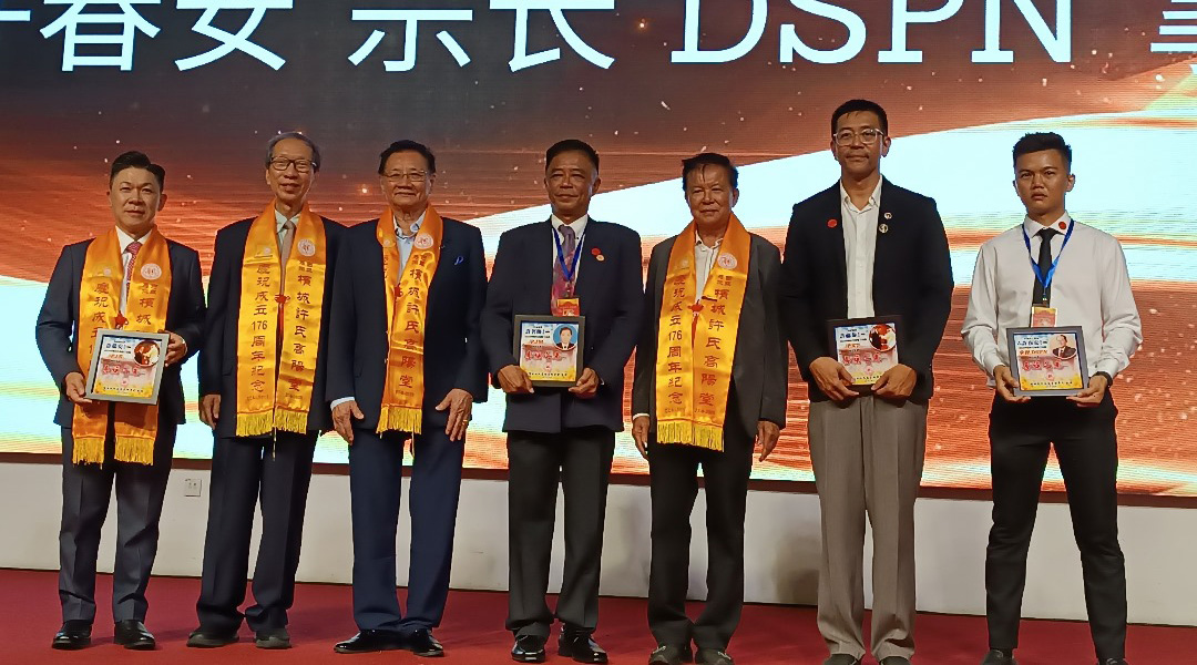 会上也颁发纪念品予受封宗亲,即许保汶PJM、许振源PJM、许名传PJM、许瑞安PJK、许福泰PKT、拿督许春安DSPN。