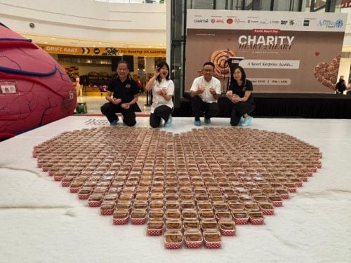 “慈善心连心”活动的亮点是一座由数千个肉桂卷组成的巨型展示,由槟安烘培店用心烘培而成。这个作品象征着医院对心脏健康与社区团结的承诺。此外,每一个肉桂卷都分发给了公众、非政府组织之家、州议员选区民众以及企业捐助者。
