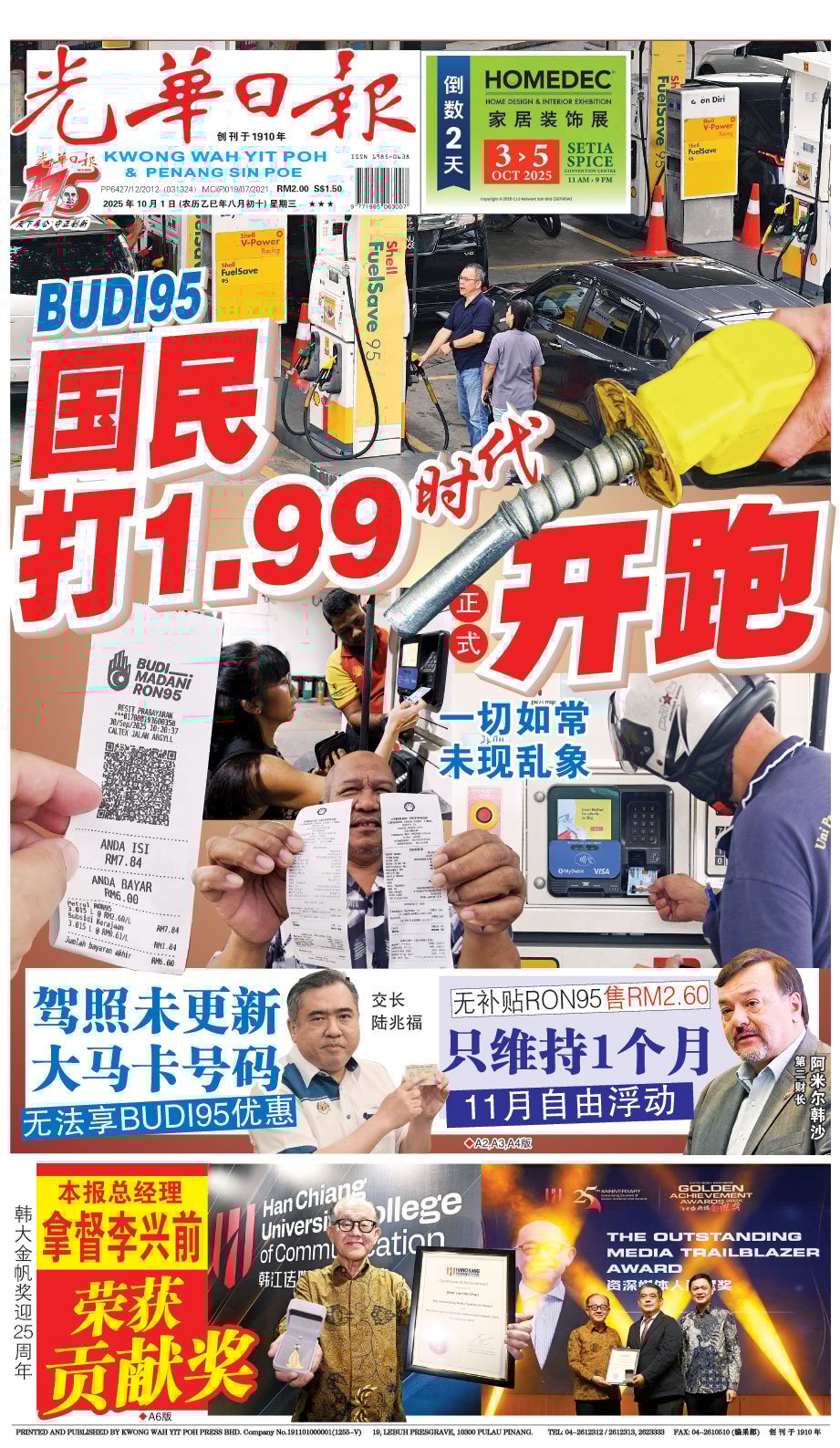 RM2.60无补贴RON95仅维持1个月 阿米尔:11月起将随市场价浮动
