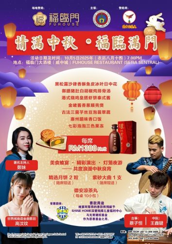 为迎接一年一度的中秋佳节,福临门大酒楼(Setia Sentral)将联同槟州中元联合会,于10月5日(农历八月十四),晚上7时举办“情满中秋. 福临满门”慈善中秋晚宴,结合美食飨宴、精彩娱乐及灯笼夜游,与宾客们一同欢庆佳节。