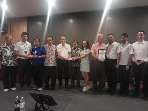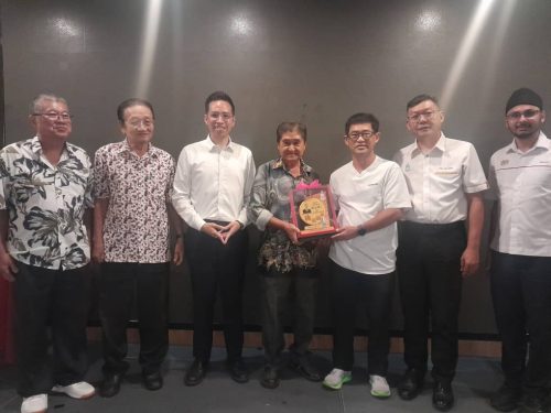 宴会上,理事会赠送纪念品,给予受封PJK的名誉主席林志明。