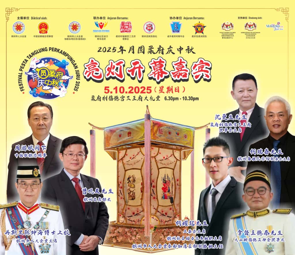 槟州华人大会堂年度盛事之一的中秋庆典,今年将再次移师威省举行,“2025月圆柔府庆中秋” 将于10月5日(周日)傍晚6时30分,在柔府村福德宫三王府大礼堂盛大登场。