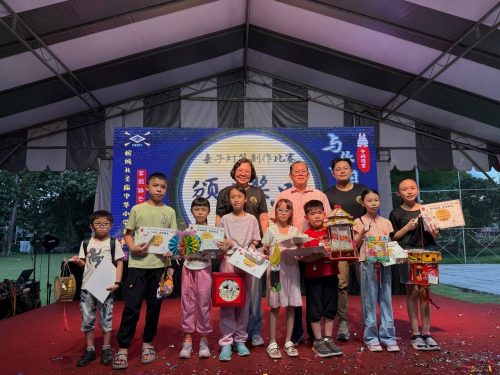 亲子制作灯笼比赛颁奖仪式,(后排左起)卢嘉莹、许春安、黄少文。