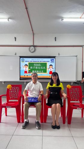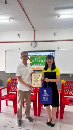 槟州首长特别协调官魏祥敬拨款为圣心小学更换50套新桌椅,让该校拥有一共150张有扶手和靠背的塑料椅子,总共2万令吉。