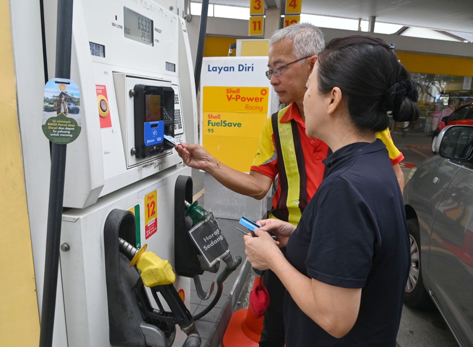 他以摩托车骑士为例,若支付5令吉添油,系统将显示实际油价为6令吉53仙,但骑士只需支付5令吉,相等于政府补贴了1令吉53仙。至于外国人,则必须以市价,即每公升2令吉60仙付费。