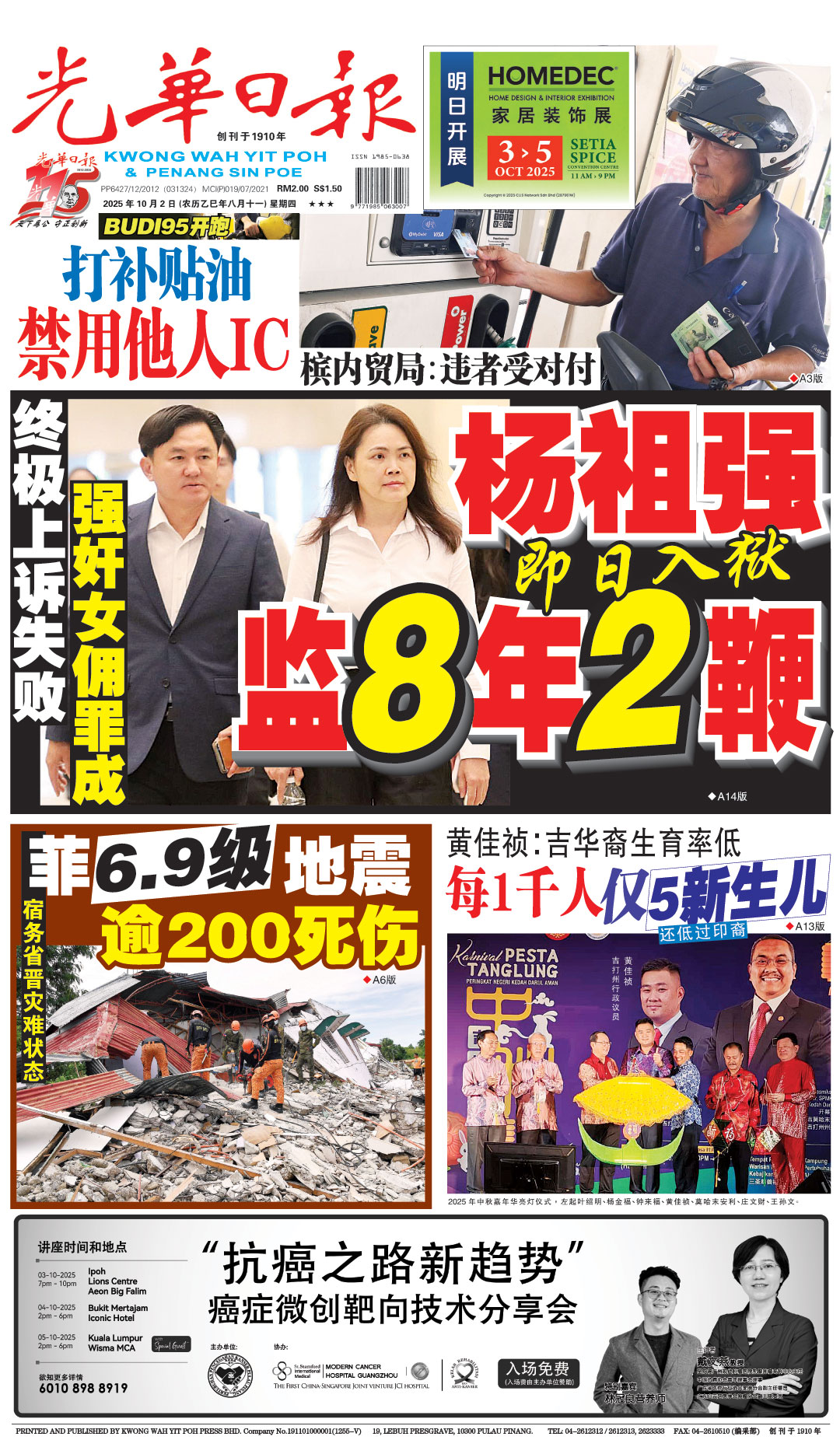 联邦法院驳回上诉 杨祖强即日入狱8年鞭2下