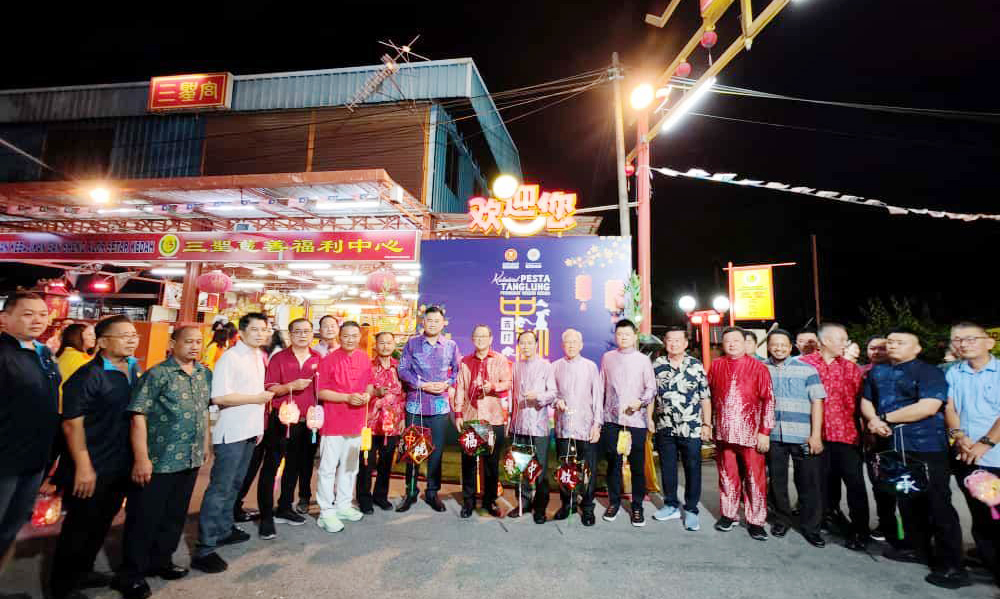 2025年中秋嘉年华亮灯仪式,左起叶绍明、杨金福、钟来福、黄佳祯、莫哈末安利、庄文财、王孙文。