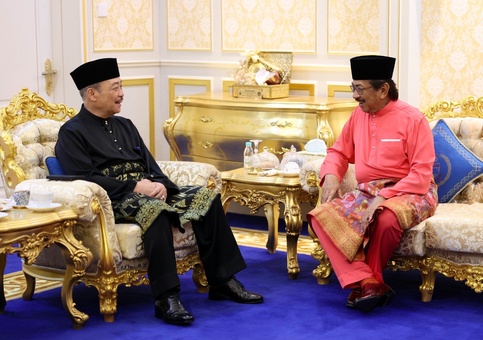 沙巴州元首敦慕沙阿曼(右)特别会晤沙巴首席部长拿督斯里哈芝芝(左)。