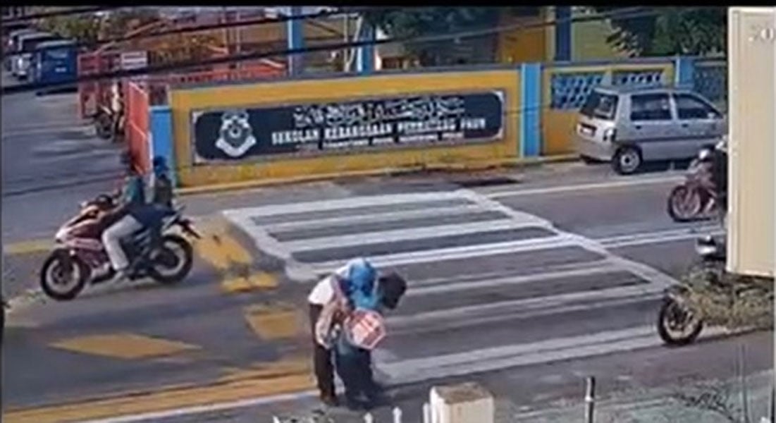 脸书专页“Penang Kini”上传了一段42秒的视频,展示了发生在威中峇东铺国小前的交通意外。
