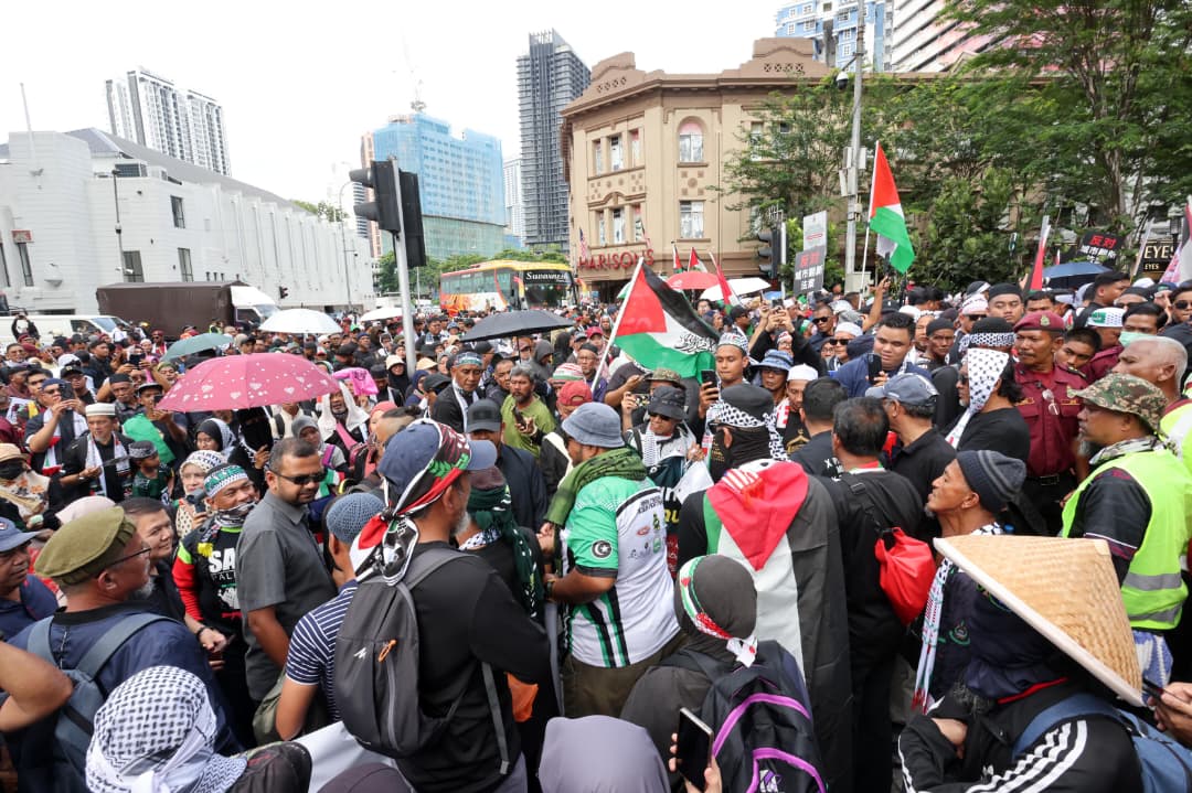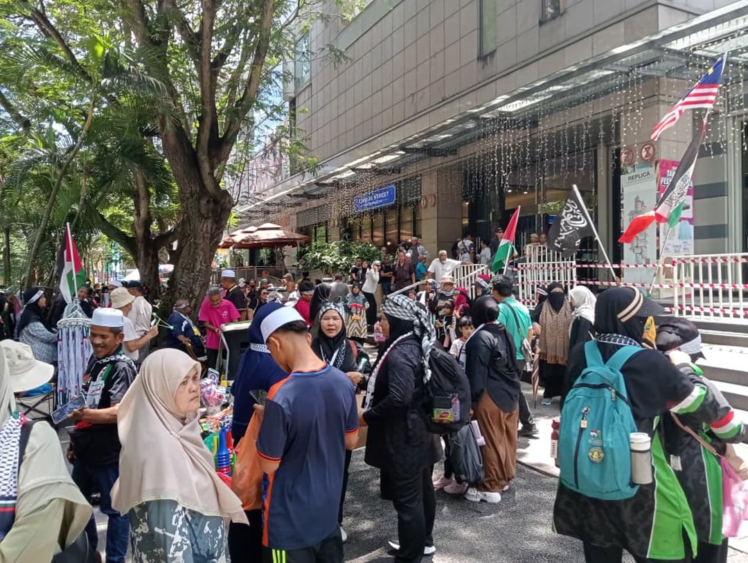 以色列军方早前拦截和扣留载着大马公民的“全球坚毅船队”前往加沙救援行动后,引起国人愤怒,自周四(3日)中午到晚上时分,许多民众仍然在美国大使馆建筑物外聚集和游行。