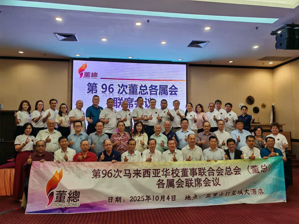 第96次董总各属会联席会议周六在亚罗士打举行,共有10个属会派出29位代表出席,出席者包括马六甲华校董事会联合会主席萧汉昌、森美兰华校董事联合会主席萧福才、雪兰莪暨吉隆坡联邦直辖区华校董事会联合会署理主席陈友信、槟威华校董事联合会主席拿督李添霖、霹雳华校董事会联合会主席颜登逸、吉打州华校董事联合会主席庄俊隆、玻璃市华校董事联合会主席陈昱铭、彭亨华校董事联合会主席杨安山、登嘉楼华校董事联合会主席卢成良、砂拉越华校董事联合会总会(砂董总)理事李利名等。